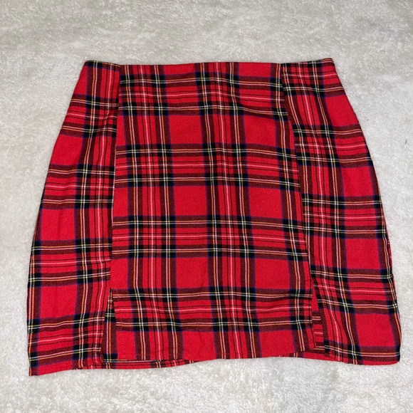 Plaid mini skirt with two small slits