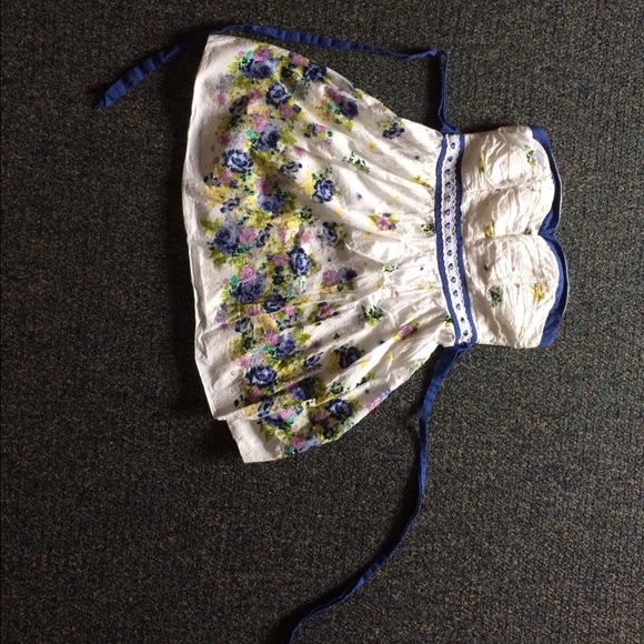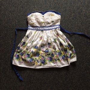 Very cute mini dress. Great for Easter or Any spring event. Floral designs on bottom of dress with a sweetheart top. Ties in the back and has an easy zipper in the back.