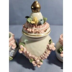 Mini Sugar Shaker Toothpick Holder Vintage Rose Garden Trinket Porcelain Set