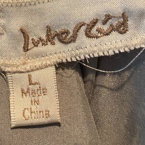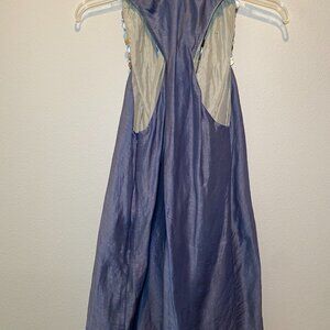 Dress is Silk & Linen. Lining is 100% Silk. Says size large but definitely for a petite small. Short Mini Dress