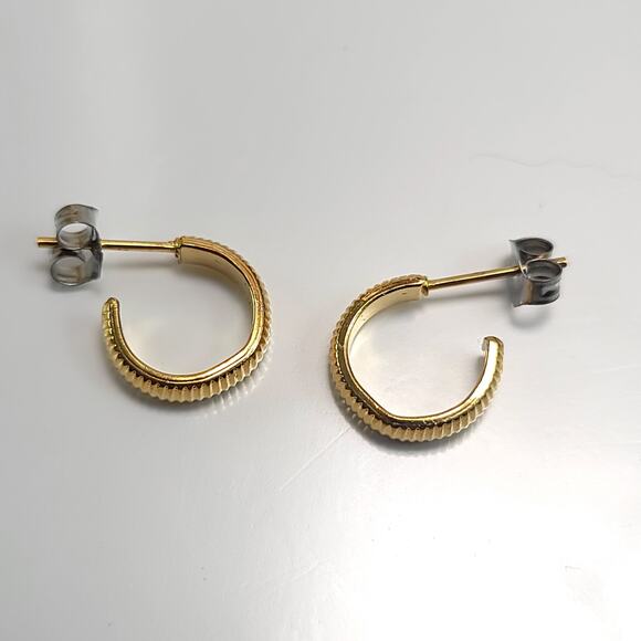 Elevate your everyday look with these mini textured gold hoop earrings, the perfect blend of dainty design and timeless elegance. Featuring subtle ribbed detailing, they add just the right touch of texture and shine while keeping the style minimal and versatile. Measuring about 0.6 inches in diameter, these hoops are small, lightweight, and comfortable, making them an easy go-to accessory for daily wear. Their understated design allows them to pair effortlessly with casual outfits, work attire, or even evening styles, bringing a hint of sophistication without being overpowering. Perfect for wearing solo for a chic minimalist vibe or layered with other earrings for a curated ear stack, they adapt beautifully to your style. Whether you’re heading out for errands, dressing up for dinner, or simply want a reliable everyday earring, these mini hoops are a jewelry box essential. A thoughtful gift idea for birthdays, holidays, or simply treating yourself to dainty elegance.