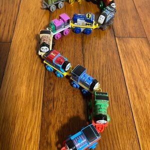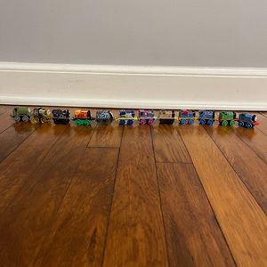 Mini Thomas the Train & Friends in Good Condition Approx. 22”long total, Includes 12 Miniature Trains Small Cap in Fair Condition