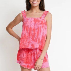 Never a dull moment in this tie dye cutie. This 100% cotton top is perfect for sunshine.