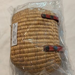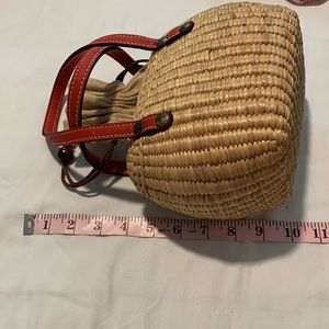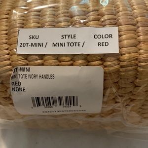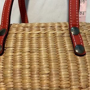 NWT Mini Straw Drawstring Tote with Red Handles