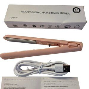 Mini Travel Flat Iron Hair Straightener Curler Curling Iron Pink Portable NEW