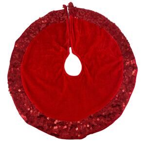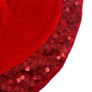 Mini Tree Skirt. Red Velvet with Sequin Trim. Good pre-owned condition. Measurements in photos.