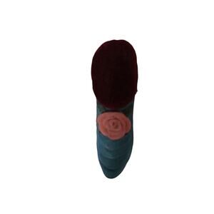 This rare Victorian-style mini shoe pin cushion is a charming collectible for sewing lovers and vintage enthusiasts. The dainty blue shoe features elegant detailing and a soft cushion top accented with a delicate pink rosette. Measuring about 3.75" x 2.5", it’s perfect as a functional sewing accessory or as a decorative piece for display. Unique and elegant, it adds a touch of vintage charm to any sewing space or collection.