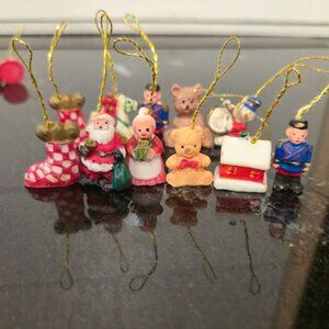 Mini Vintage Christmas Ornaments & Tree Skirt Set 1980s Holiday Miniatures Sant
