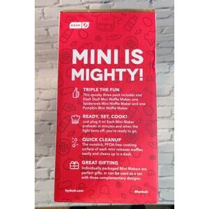 The Dash Halloween Mini Waffle Maker Set of Three includes a Recipe Guide that will have you making spookily delicious treats throughout the fall season. Each Mini Maker comes in an individual box, so they make great gifts.