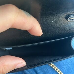 Sleek black wallet with a stylish gold chain. Features iconic Coach design.
