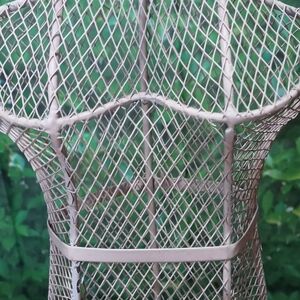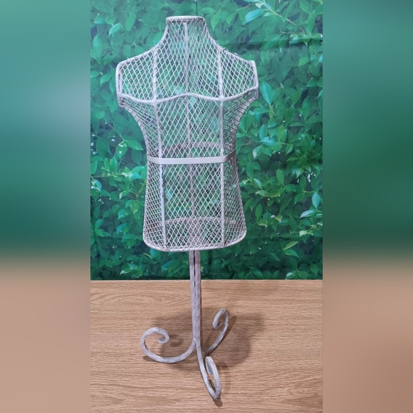 Add a touch of elegance to your home with this vintage-style cream wire mannequin stand. Perfect for displaying jewelry or as a decorative accent. Approximately 19 inches tall. In good used condition. Comes from a smoke free home.