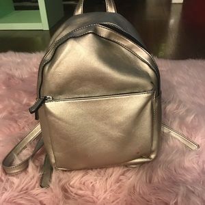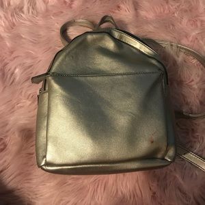 Shiny silverfish/pink color mini backpack, small red paint stain
