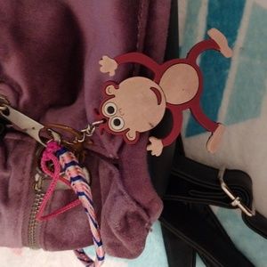 purple velvet cinch top multiple pockets includes monkey zipper pull