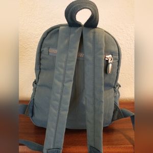 Very roomy, hold a 10 inch tablet/ iPad air/ mini/ kindle, a small umbrella, a water bottle, etc.