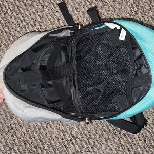 this mini backpacks has many pockets with elastic inside to hold items secure. also has slits on each side for cords of any sorts that me need to come out (headphones if not cordless) lightly used