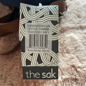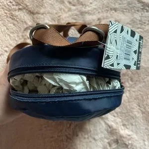 This is brand new. Has never been used. You can wear it as a backpack or crossbody style.