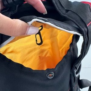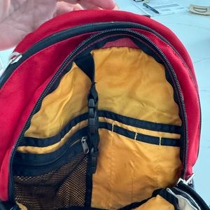 Mini backpack. Multiple pockets. Clean inside. Handle has a small crack but does not impact the structure.