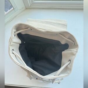 Used but still in good shape. Grey-ish white color. Adjustable straps. Has a small pocket inside.