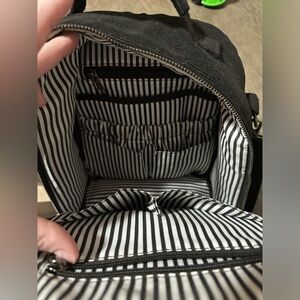 RadRev brand mini backpack in black corduroy. Gently used; no stains, holes or smells. If you’re looking for the perfect diaper bag/purse-this is it! Enough pockets inside to keep small things organized & space for diapers/wipes & a front pocket for all your mama things!