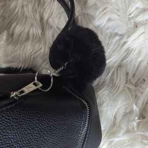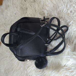 cute Mini backpack with a lot of compartments and a furry pom pom attached