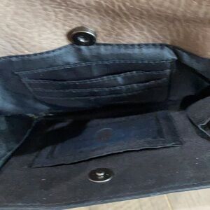 Very clean has many too Ms for cards and money the color is mixed between tan and gray very good condition.