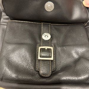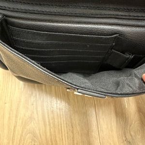 Genuine leather. Used condition—shows signs of wear, which adds to its charm.