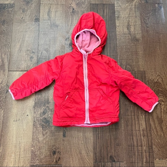 Mini boden toddler girl heavy lined coat Sz 2-3 years pink red full zip