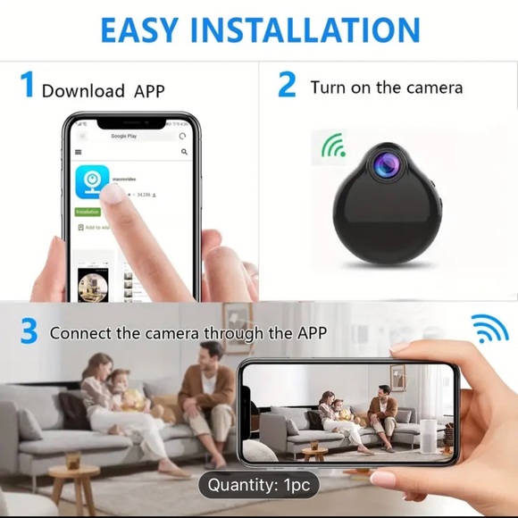 Focus On Focuses Portable Surveillance Camera – Wi-Fi HD 480p, Night Vision, Motion Activated, Indoor/Outdoor Wireless Nanny Cam with App Control