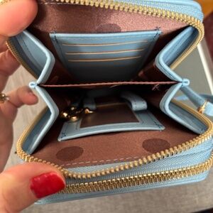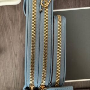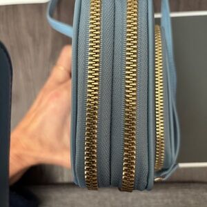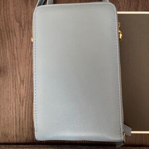 Light blue crossbody purse Never used Loads of places to keep all your items Pockets on the outside Pockets on the inside