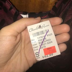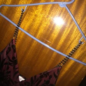Sexy dark red and black features. Beaded straps. Never worn. Tags still in place.