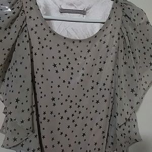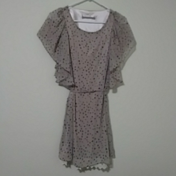 Mini Dress tan w/ brown stars & butterfly sleeves
