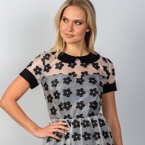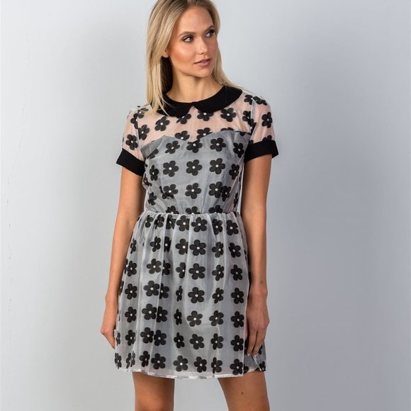 -Ladies fashion daisy print baby doll peter pan collar mini dress-