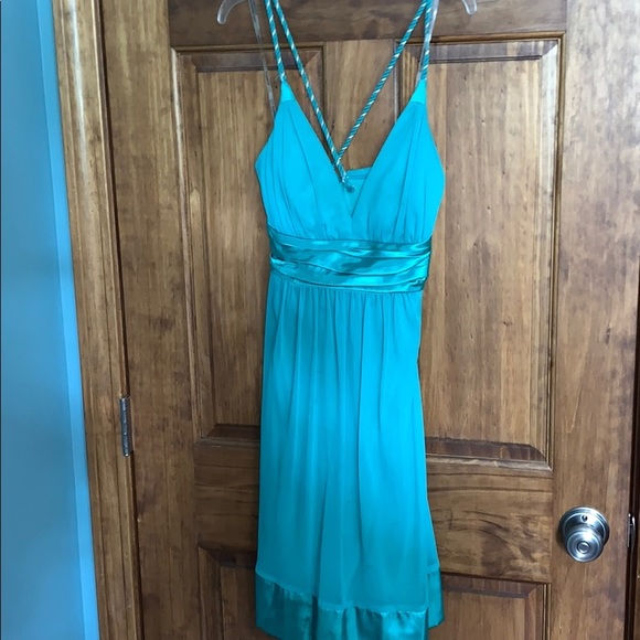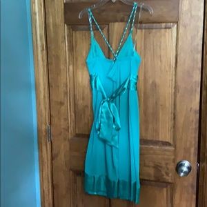 Worn once; some imperfections in central ribbon area, as seen in 3rd photo, and some bronzer on inner chest area that should be removed with dry cleaning