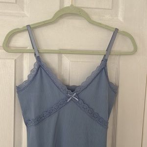 Lace detail bodycon style mini dress. Adjustable straps, stretch material