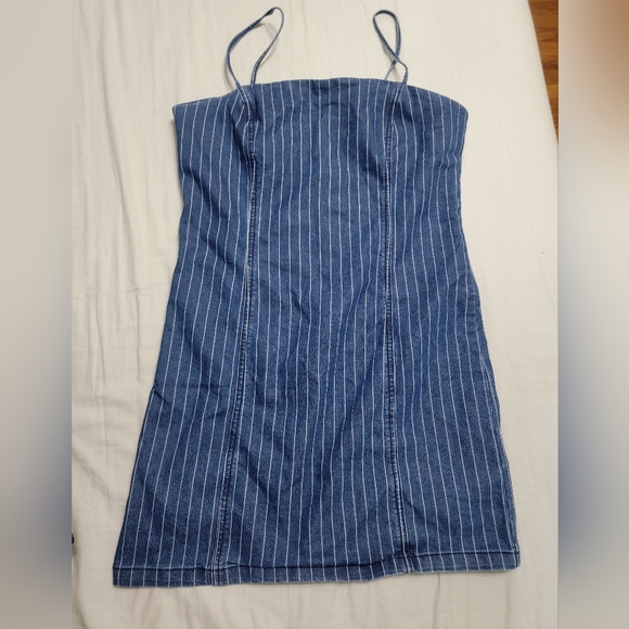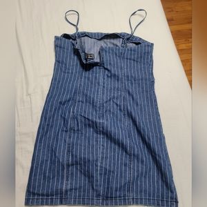 never worn denim pin stripe mini dress with adjustable spaguetti straps forever 21 size large little stretch