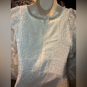 Cute cream button mini dress , has some fraying in the back .