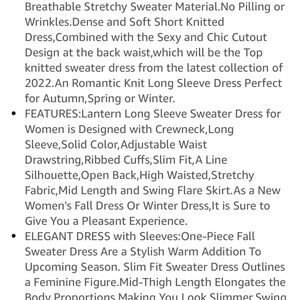 Lantern Long Sleeve Cutout Mini Sweater Dress Crewneck Slim Fit Solid A-line Fall Knit Short Dress