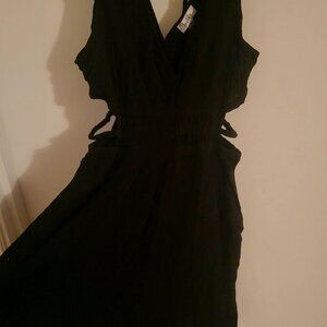 Black mini dress. V neck. Side cut outs. Worn once. Size L