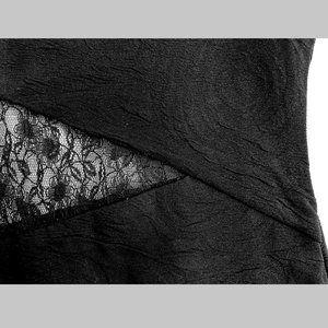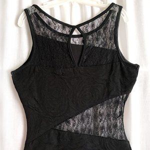 Mini dress with lace accents. Bodycon, sleeveless. Black. Size S
