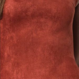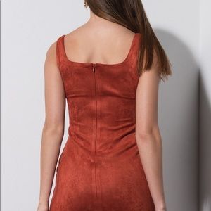 Mini faux suede bodycon dress rust