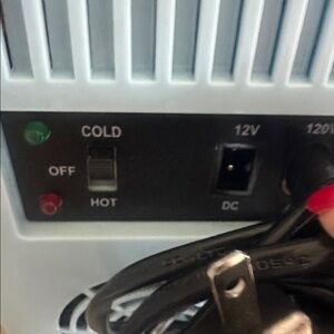 The compact fridge is equipped with two power cords (AC & DC) for home and car use