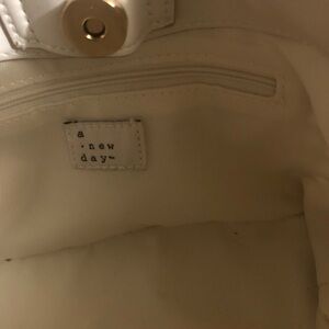 A new day mini slouch handbag in the color off white. Carried once. Smoke and pet free home. Snap closure. Dimensions (Overall): 8.25 Inches (H) x 8.75 Inches (W) x 4.25 Inches (D)