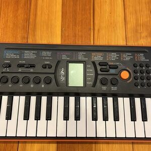 Small keyboard. Great for kids. It has many settings for different sounds and has a drum option. Only 23” long. Used but good condition.