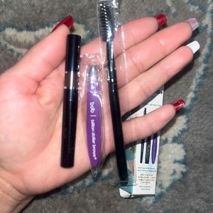 Mini tweezer, mini brush, mini brow pencil perfect for traveling. Makes perfect kit to take anywhere you need.
