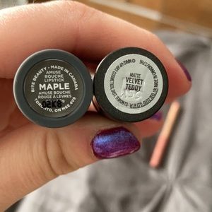 Cute lil mini lipsticks . MAC shade velvet teddy & BITE shade maple