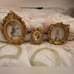 Charming set of gold framed mini Peter Rabbit magnets Measurements in photos