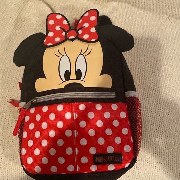 Disney Baby Mini Mouse backpack. 10” long. Waist and shoulder straps. One zipper front pocket and 2 mesh side slots. Clean, smoke and pet free home.