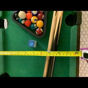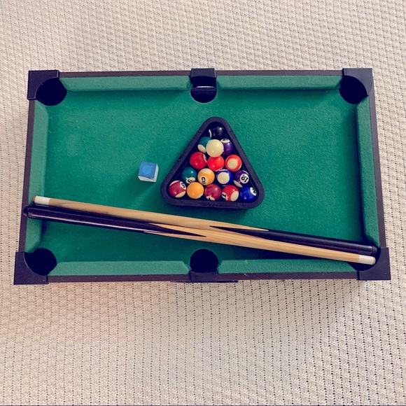 Game night! This will be a conversation piece and tons of fun! Easy to store in the office or keep out on the coffee table at home! Ball goes in pockets and into tray like a real pool table.