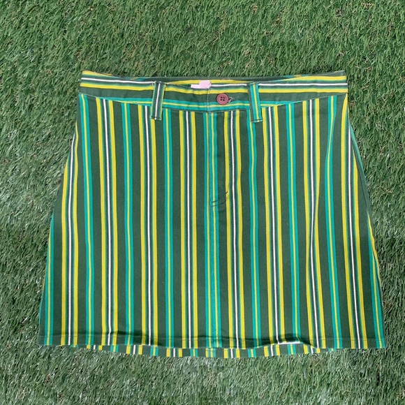 SOLD SOLD SOLD SOLD $18 thru depop @thinkthrift_ Varies of green striped skirt / mini skirt ! Labeled : 2 Measurements πŸ“ Width : 25” Length : 28”