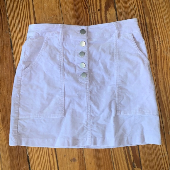 Lavender mini skirt Button up Velvet material Has pockets Size Small